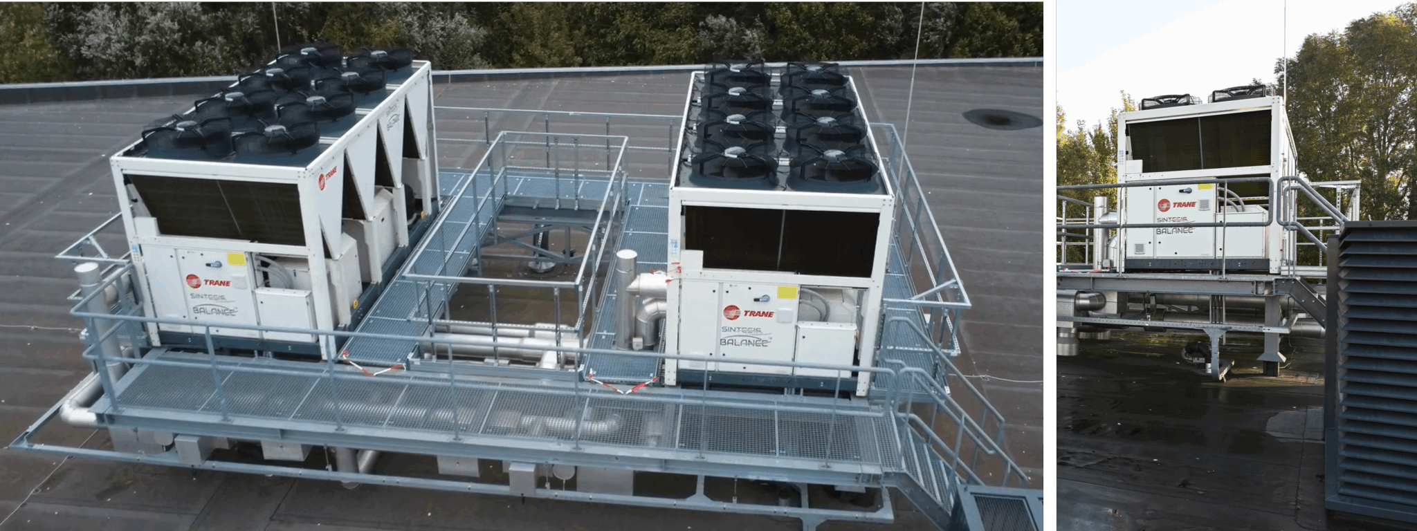 Nu Trane dit speciale Walraven platform op het dak heeft laten maken, kunnen de Trane multi-pipe units goed geservicet worden. Het is veilig, snel en prettig werken voor monteurs en installateurs.